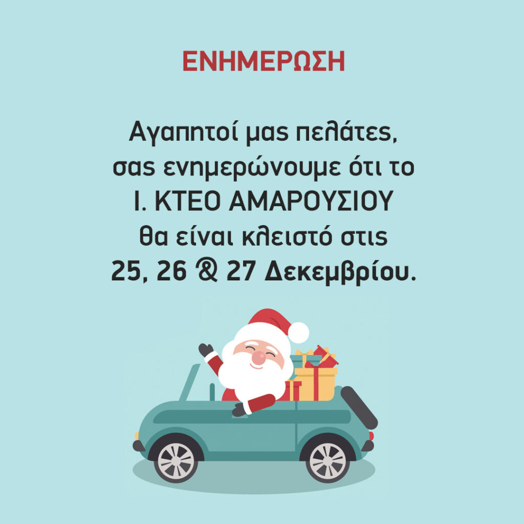 7 Απριλίου, 2024Πηγαινω και τα δύο αυτοκίνητα και είμαι ευχαριστημένος, ευγενικό και εξυπηρετικό προσωπικό πάντα μου στέλνουν μήνυμα και ειδοποιήσεις 10 μέρες νωρίτερα και για το κτεο και για την κάρτα καυσαερίων